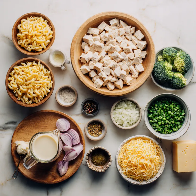 Gathering Your Ingredients for Cheesy Chicken Broccoli Pasta