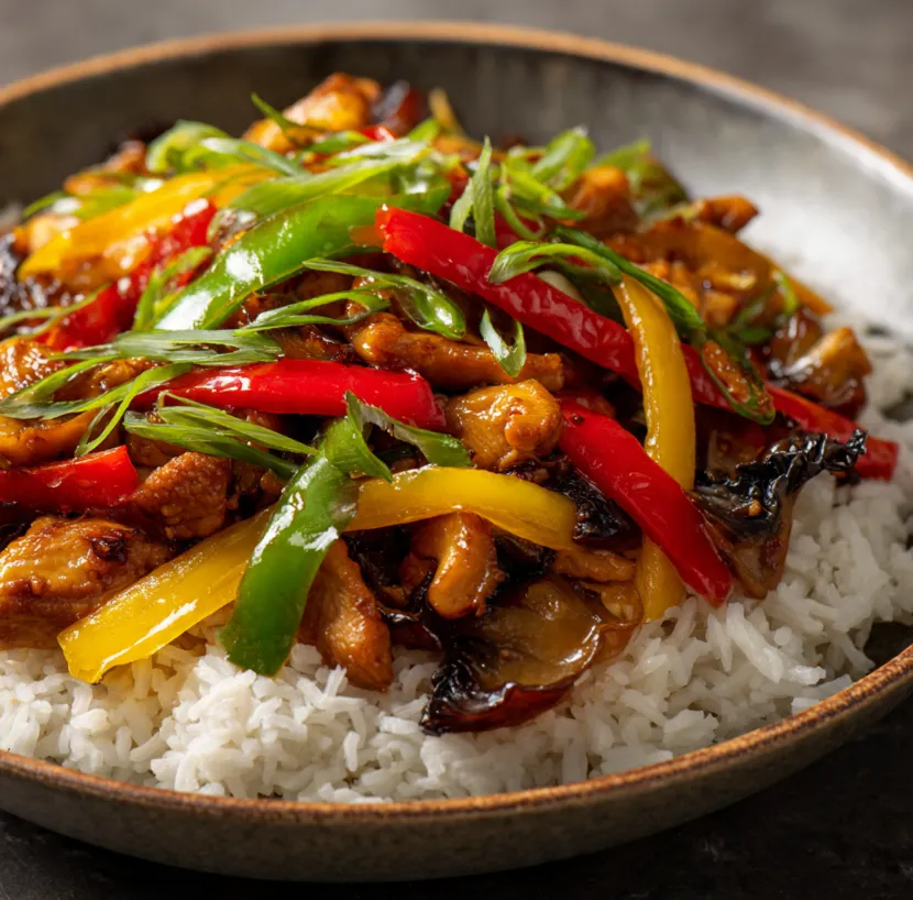 Give the cornstarch slurry a final stir and slowly drizzle it into the simmering sauce while stirring constantly. The sauce will thicken into a glossy coating. Return the cooked chicken (and any juices) to the wok. Add the green parts of the onions. Toss everything together for a final minute until piping hot and beautifully coated.