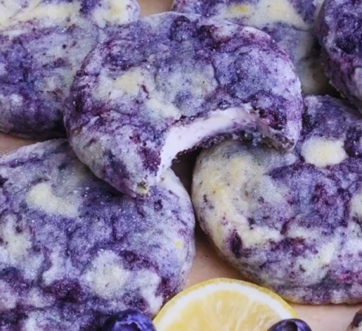 Follow these steps carefully for cookies that are golden on the outside, soft and cake-like on the inside, with a burst of blueberry and a creamy surprise.