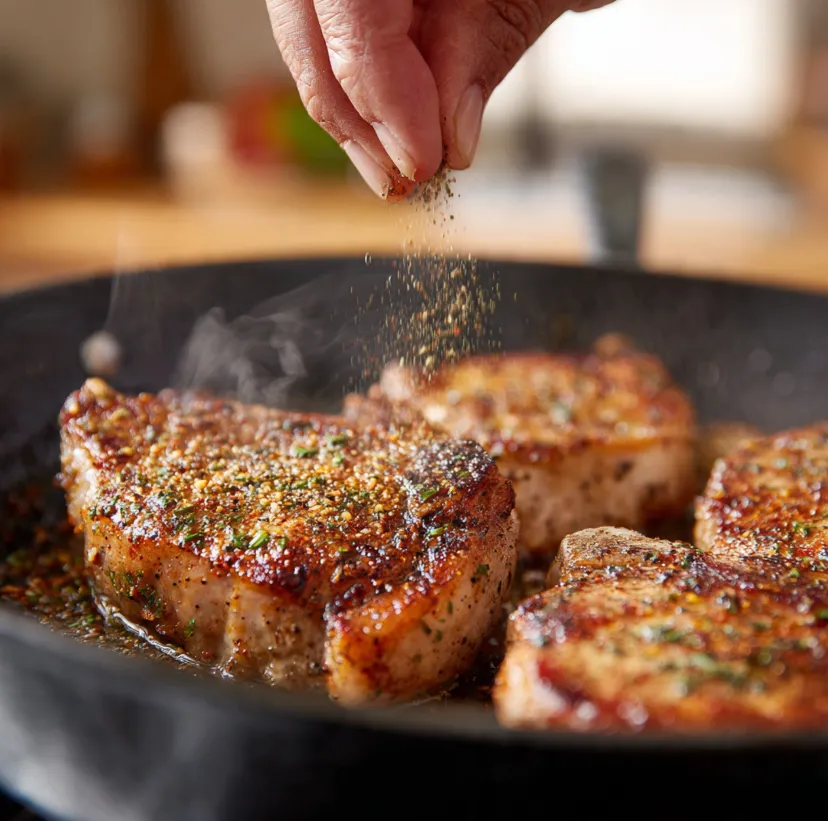 Step 2: Season and Sear the Pork Chops