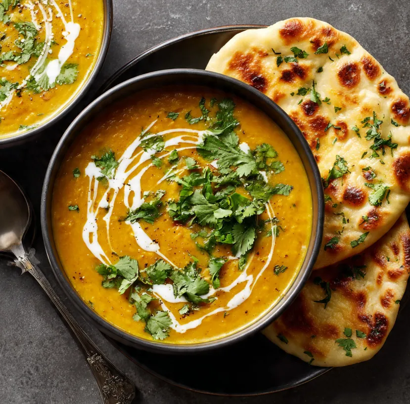 Ladle the hot soup into bowls. Garnish with a generous handful of fresh cilantro, a swirl of coconut cream, and a lime wedge on the side. Serve immediately with warm naan bread for dipping.