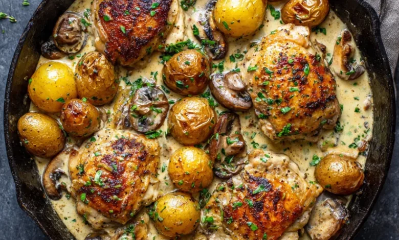 Creamy Garlic Herb Chicken with Roasted Potatoes & Mushrooms: Your Ultimate One-Pan Comfort Food