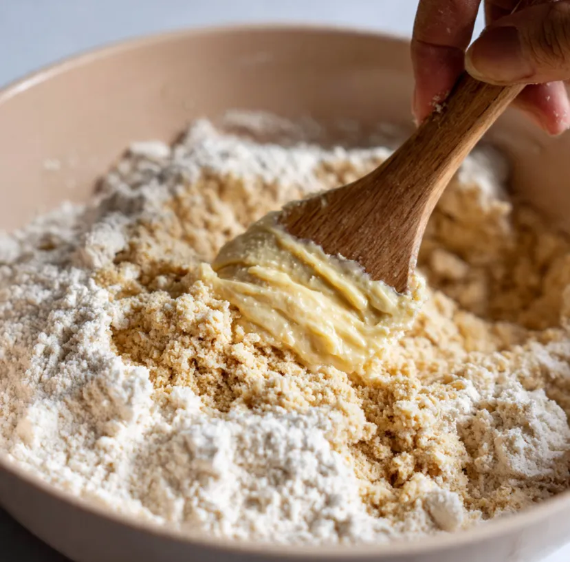 With your mixer on low speed, gradually add the dry ingredient mixture to the wet ingredients. Mix only until the flour disappears and a soft dough forms. Do not overmix! Overmixing develops gluten, which leads to tough cookies.
