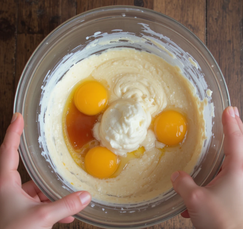 In a separate medium bowl, whisk the eggs until lightly beaten. Add the maple syrup, melted and cooled coconut oil, yogurt, and vanilla extract. Whisk vigorously until the mixture is smooth and well-emulsified.