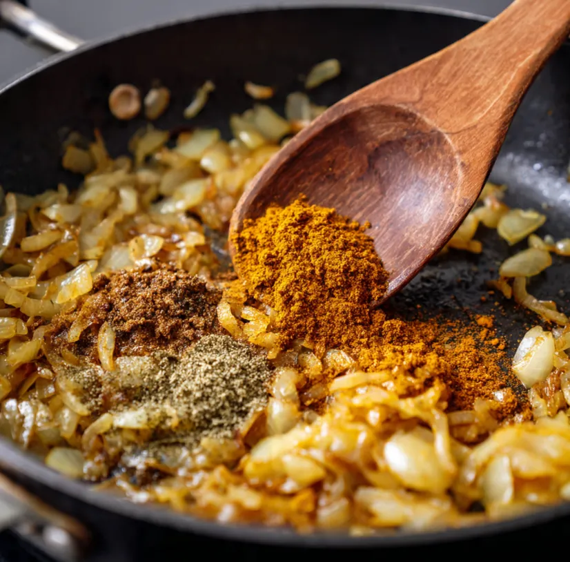 Add all the dried spices curry powder, turmeric, cumin, coriander, cayenne, salt, and pepper to the pot. Stir constantly for about 30 seconds to 1 minute. Toasting the spices releases their essential oils and deepens their flavor, which is a key secret to a rich-tasting curry.