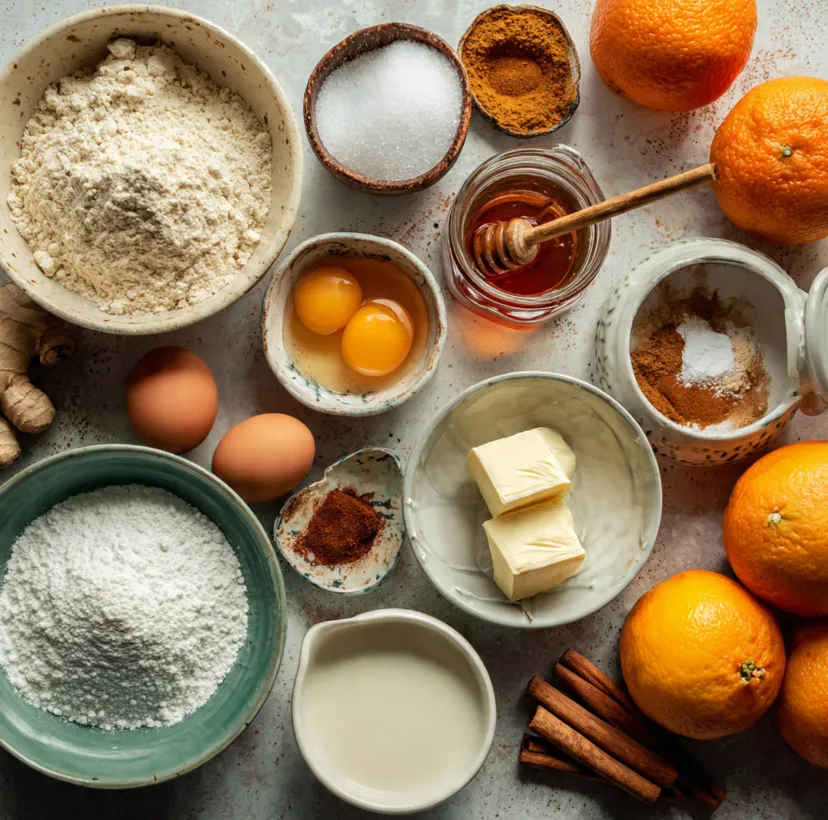 Everything You Need: Honey Ginger Orange Cakes Ingredients
