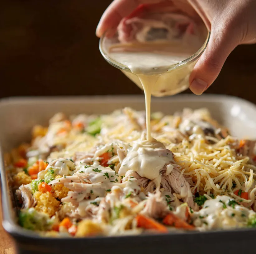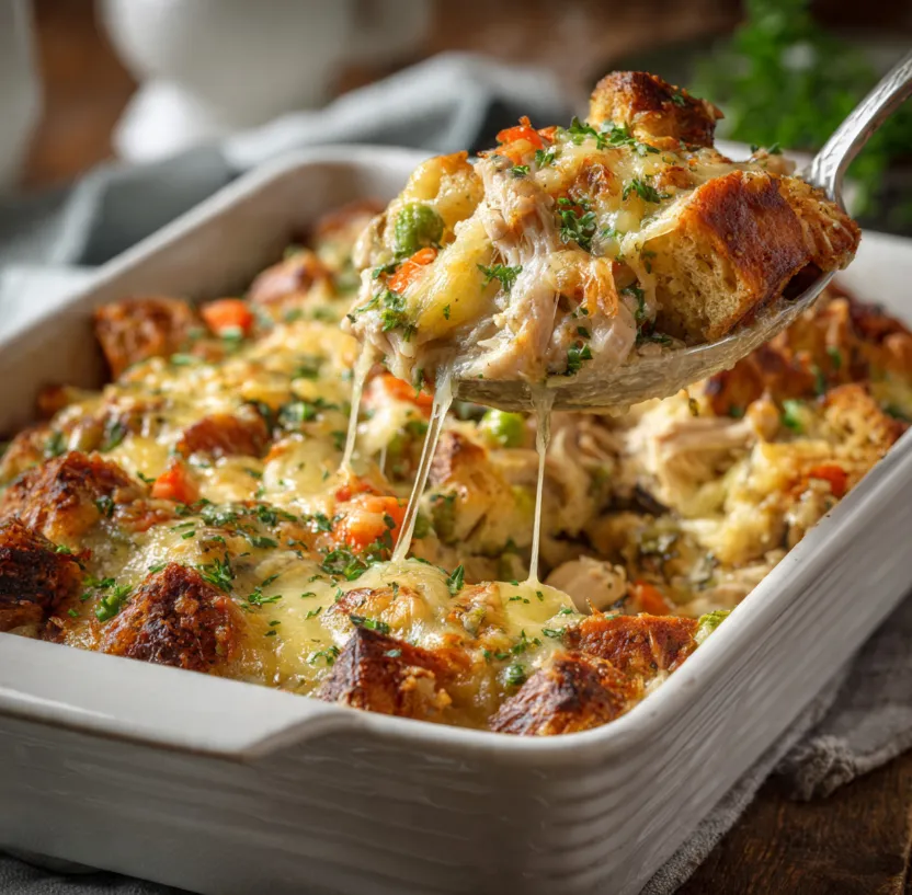 This recipe isn’t just another way to use up turkey. It’s a strategic upgrade. We combine moist turkey, savory stuffing, and vibrant vegetables in a rich, homemade sauce, then top it all with a crispy, cheesy layer. It’s:
