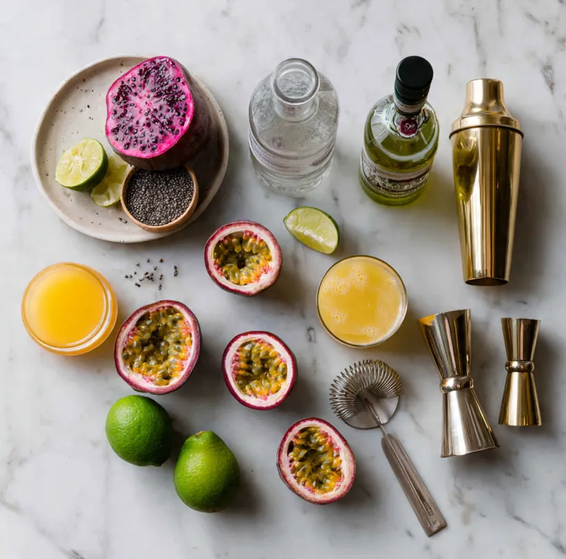 - Garnish: Fresh mint, a lime wheel, or extra passion fruit seeds.