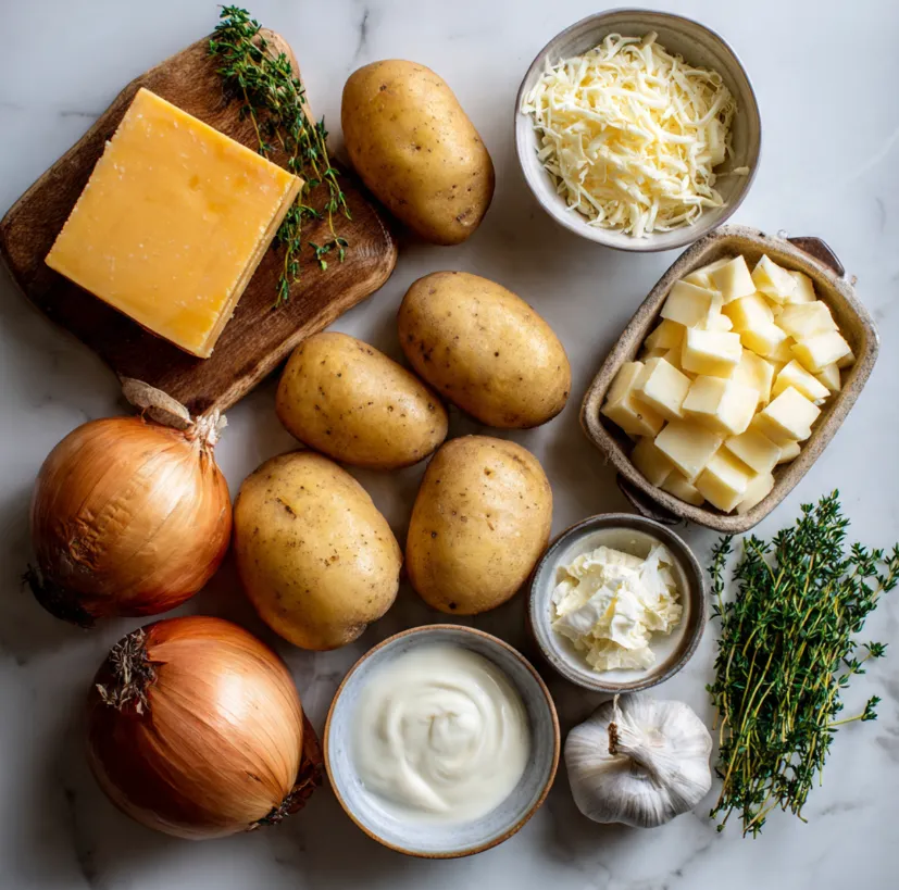 The magic of this dish lies in the simplicity and quality of its components. Using the right potatoes and good cheese makes all the difference. Here’s your shopping list to create the ultimate comfort food loaf.