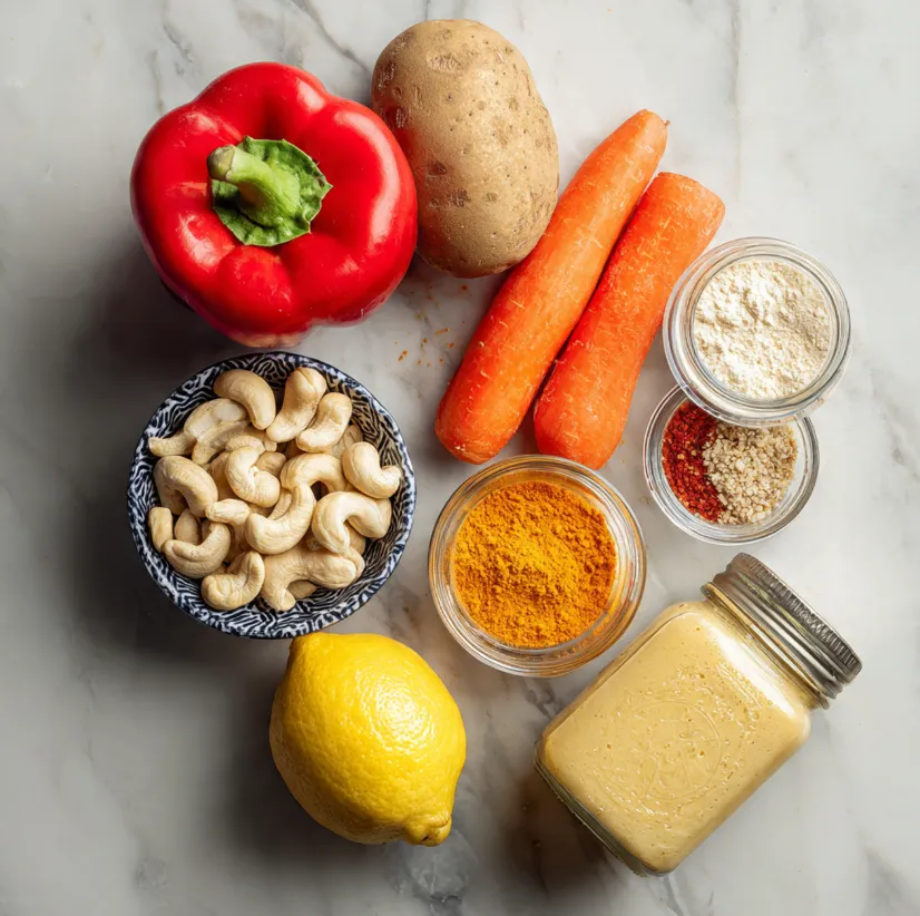 - 1 large red bell pepper (or 2 small ones): This gives the sauce its classic “cheddar” color and a sweet, smoky base flavor when roasted.
