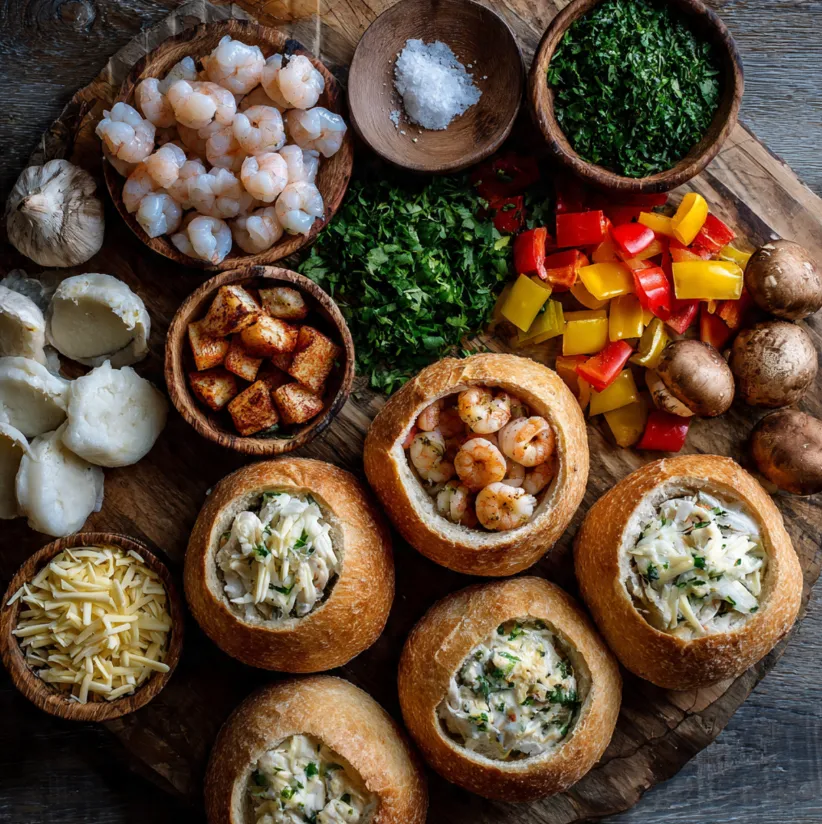 • Make-Ahead Magic: You can prepare the creamy seafood filling 1 day ahead. Store it covered in the refrigerator. When ready, gently reheat it on the stove, adding a splash of milk if needed, then stuff and bake your bowls. You can also hollow and pre-toast the bowls a few hours in advance.