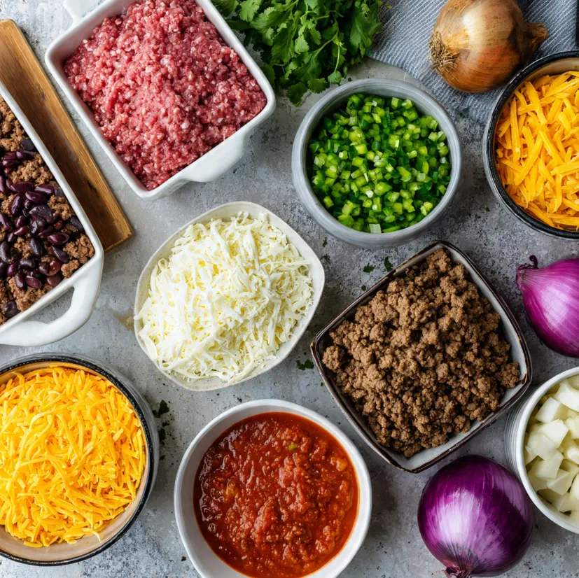 - Repeat: Create a second layer in the same order: Tortillas → Remaining Beef → 1 more cup of Cheese.