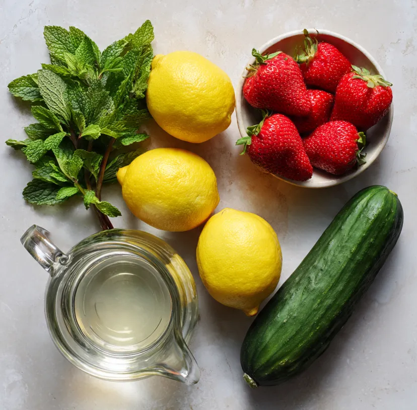 - Prepare the Fruits and Herbs. Hull the strawberries and slice them in half. Slice the lemons into thin rounds. If using ginger, slice it into thin coins. Slice the cucumber. Gently clap the mint leaves between your palms to bruise them slightly this releases their aromatic oils.