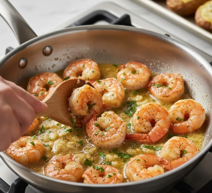 - Load Them Up: Divide the garlic butter shrimp (and any glorious juices from the pan) evenly among the potatoes. Sprinkle the chopped bacon (if using) over the shrimp.